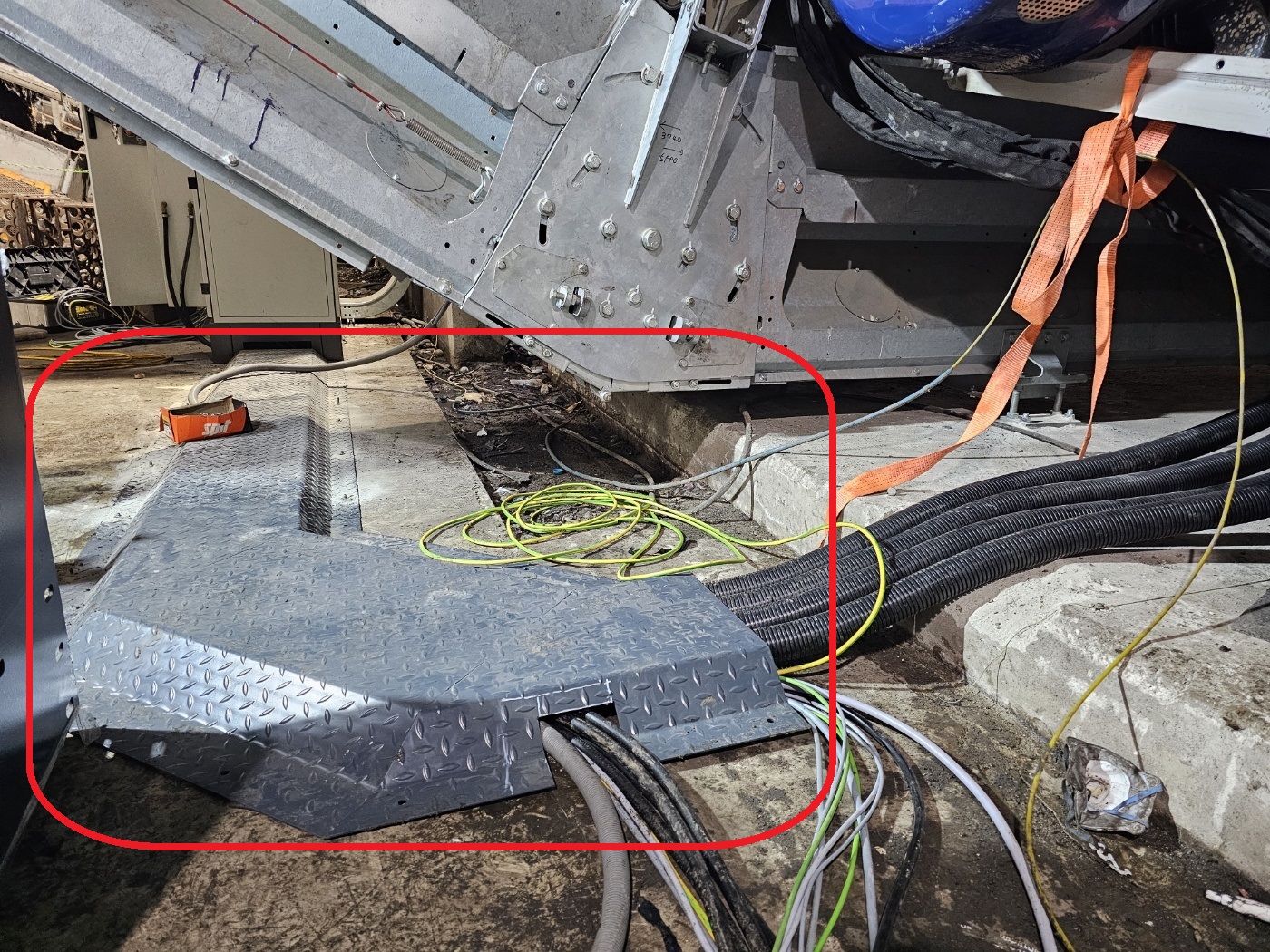 위에 철판 커버를 설치하였는데 제가 보기에 추후에 하중에 의한 철판이 파손 및 내부 수분, 이물질로 인한