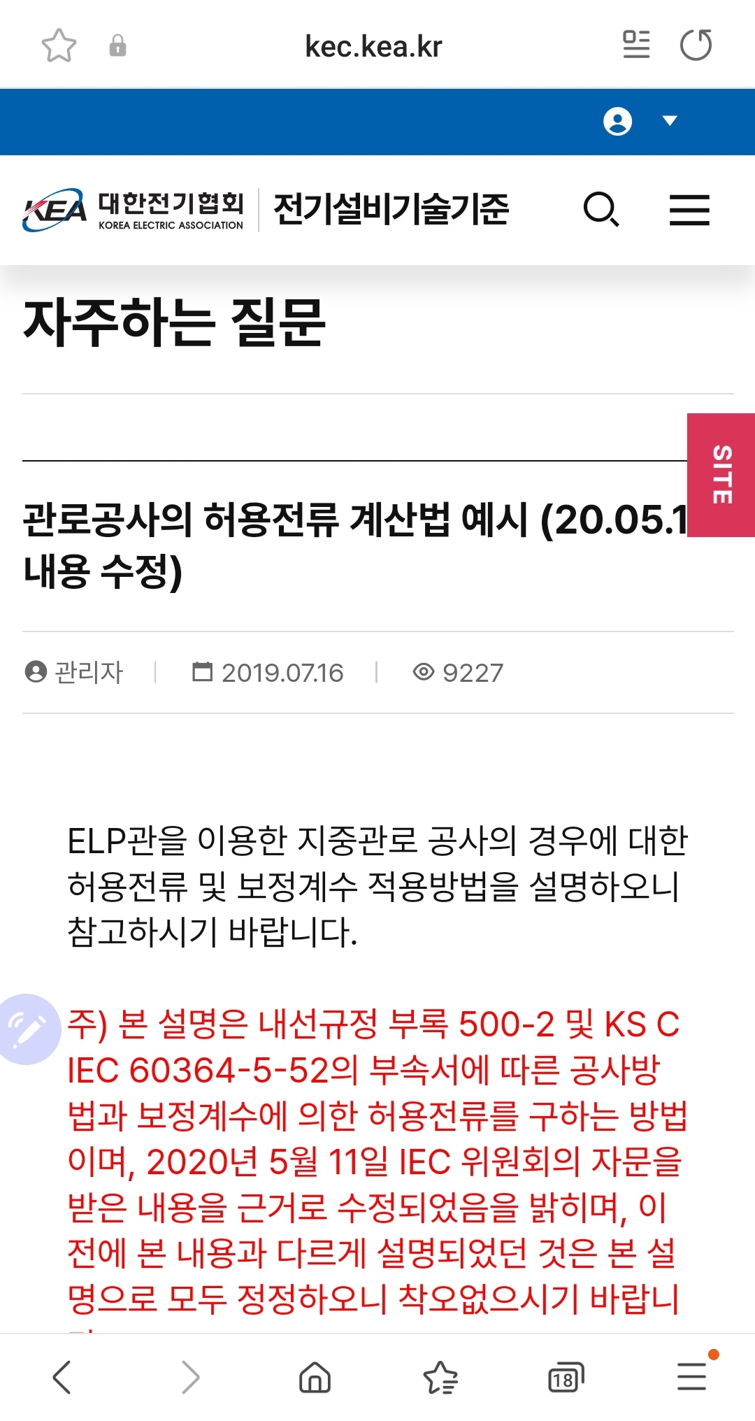 2. 대한전기협회 홈페이지 자주하는질문 No.13의 내용은 2020.5.11.에 수정된 내용으로 현재까지 개정되지 않았음을 알려드립니다. 끝.