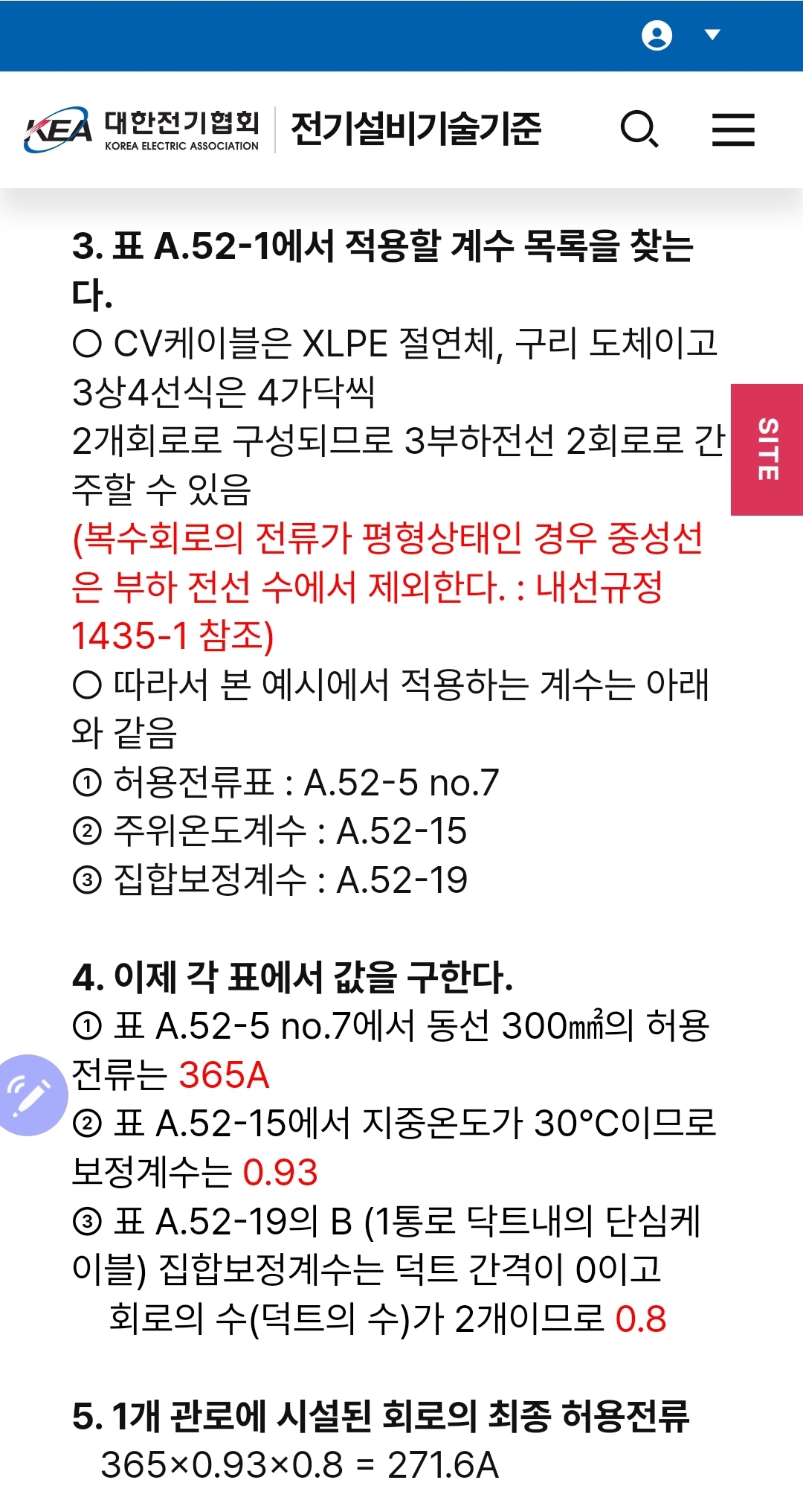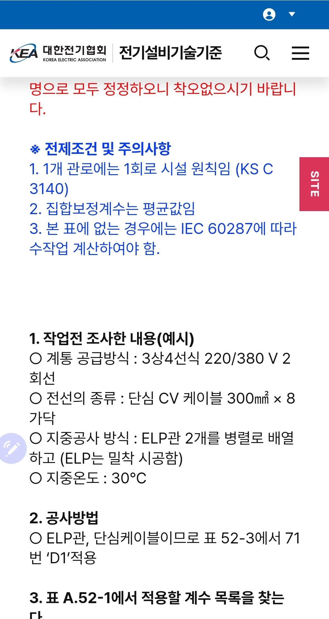 자주하는질문 13번 "관로공사 허용전류 계산 예시" 2020.05.11