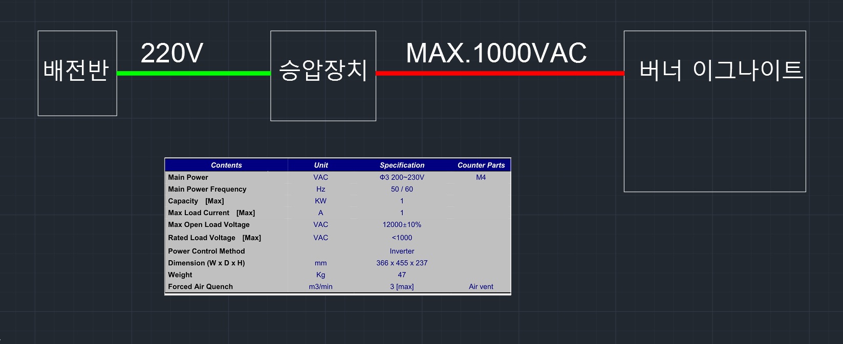 AC220V 를 받아서 승압장치를 AC MAX.1000 이용하여 버너의 이그나이트를 사용하려 하는데
