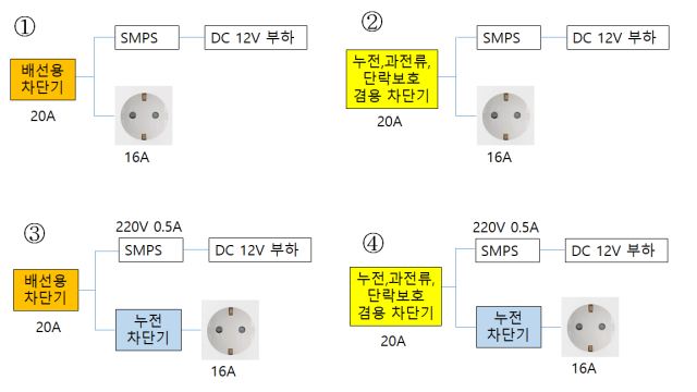 질문 1 - 차단기 한개당 콘센트 1개만 사용 가능하고 추가적인 부하를 연결하면 안되나요?