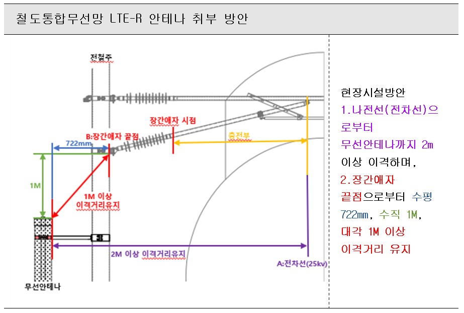 ○ 전차선과 안테나와의 이격거리에 대한 적용기준은 아래와 같습니다.