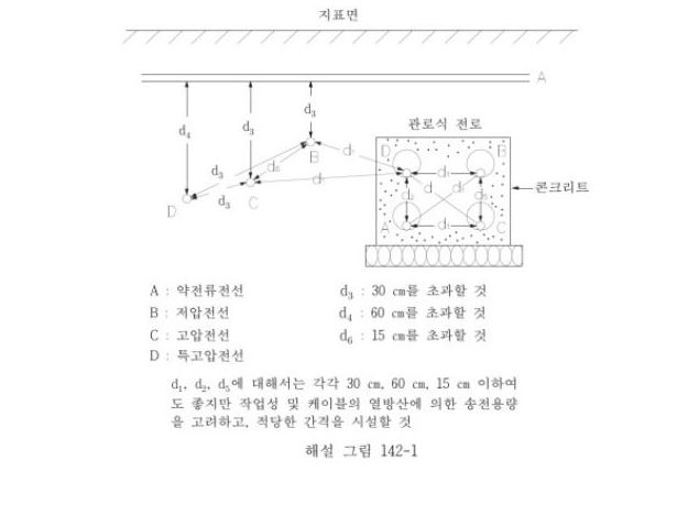 [6578] 판단기준 142조에 의한 지중전선로 관로식 상호 이격거리 질의
