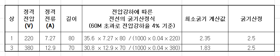 [6612] 전선의 최소굵기 산정에 대해 문의 드립니다.