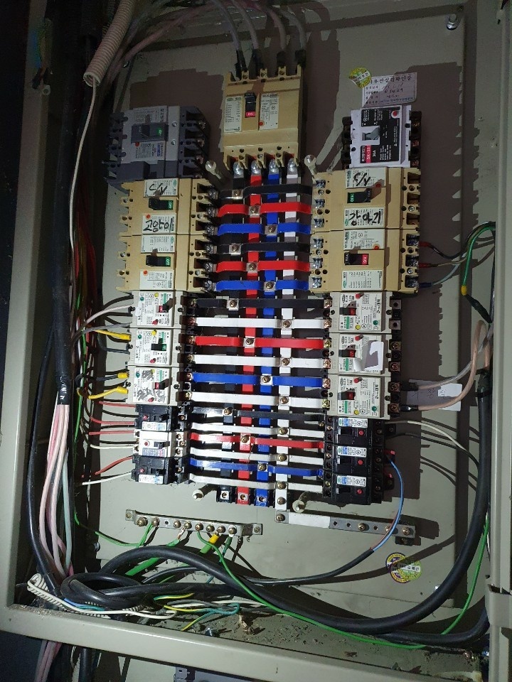 첨부의 배선반 사진으로 전기 누전 내지 과전류 상태인지 확인이 가능하다면 알려주시기 바랍니다.
