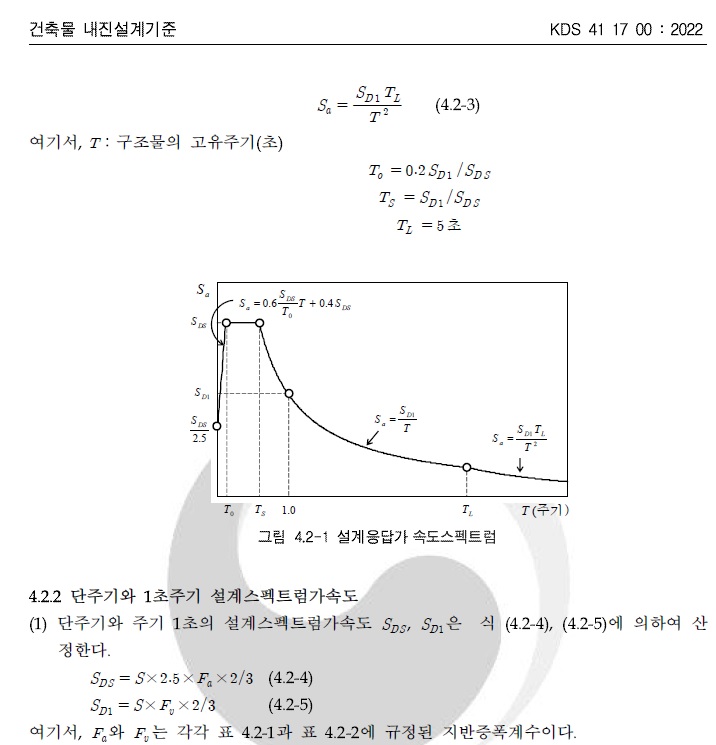 [8783] KECG 6801-2021中 단주기 스팩트럼가속도, 1초주기 스팩트럼가속도 산정식 문의件