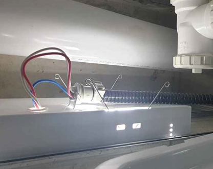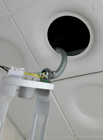 욕실및 이중천정내의 등기구 설치시 첨부사진과 같이 가요전선관을 등기구에 고정시켜 말단처리를 하였음.